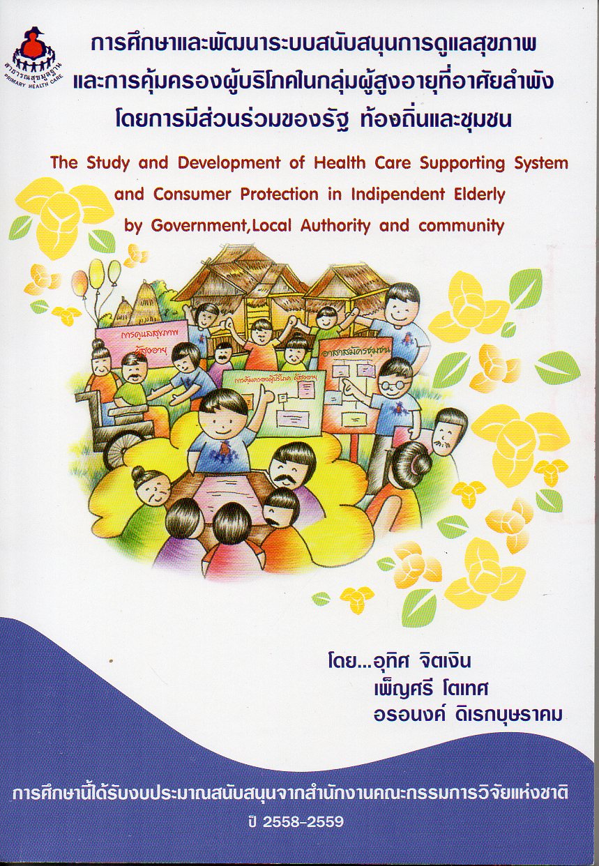 การศึกษาและพัฒนาระบบสนับสนุนการดูแลสุขภาพและการคุ้มครองผู้บริโภคในกลุ่มผู้สูงอายุที่อาศัยลำพังโดยการมีส่วนร่วมของรัฐ ท้องถิ่นและชุมชน: The study and development of health care supporting system and consumer protection in indipendent elderly by government,local authority and community / อุทิศ จิตเงิน, เพ็ญศรี โตเทศ, และอรอนงค์ ดิเรกบุษราคม |